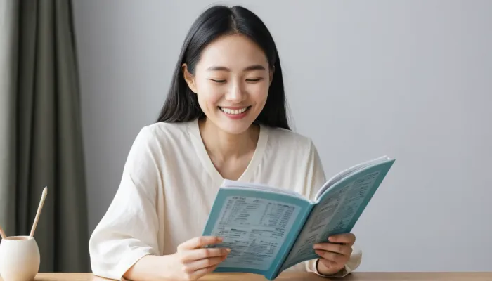 2025년 뱀띠 운세를 보며 미소 짓는 모습