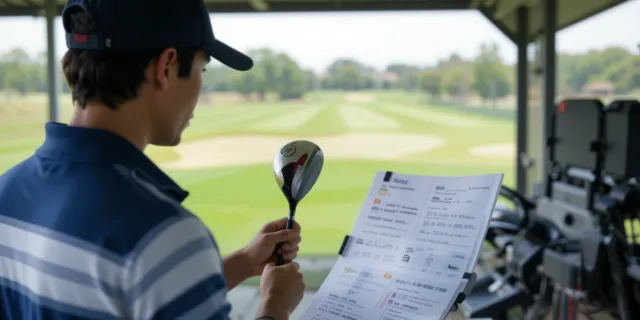 2025 캘러웨이 드라이버 장단점 설명골프 코치가 연습장에서 학생에게 드라이버 특성을 설명하는 장면