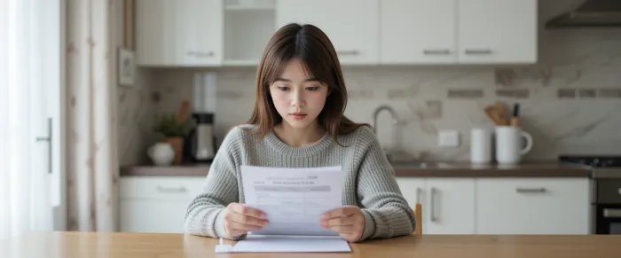 위내시경 금식시간을 체크하는 여성의 모습위내시경 금식시간을 정확히 지키기 위해 식탁에서 체크리스트를 확인 중인 여성