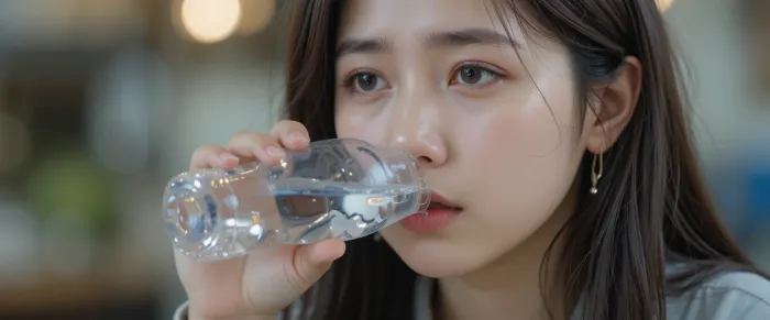위내시경 금식시간 전 물을 마시는 여성 모습금식시간 전에 물을 마실 수 있는지 고민하며 컵을 든 여성